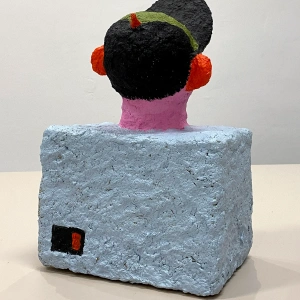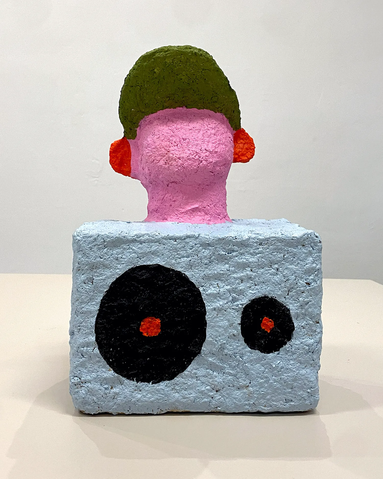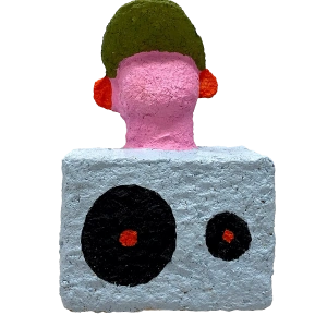 Człowiek z czerwonymi uszami to rzeźba z pogranicza serii Rzeźby Towarzysze i świata Licho nie śpi. Z bryły głośnika wyrasta ludzka głowa. Rzeźba utrzymana jest w wesołych, cukierkowych kolorach. Tylko uszy są już przegrzane. A może to tylko złość na kiepską muzykę?