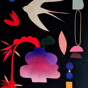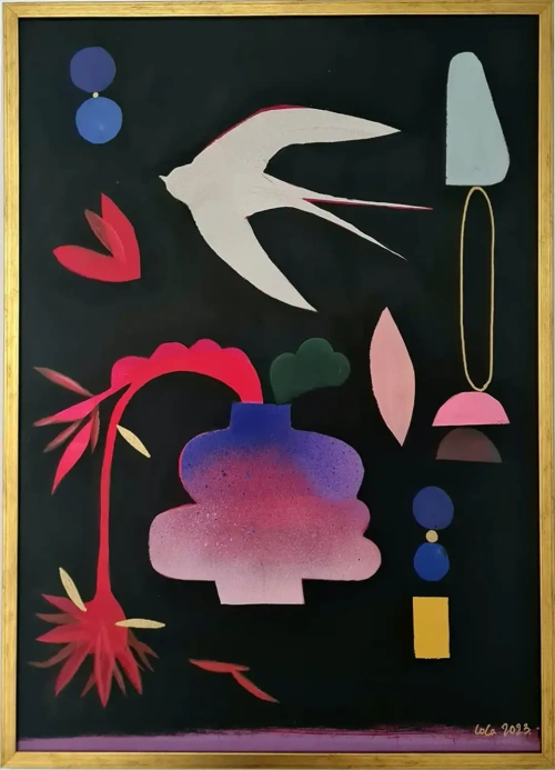 Kompozycja z białą jaskółką