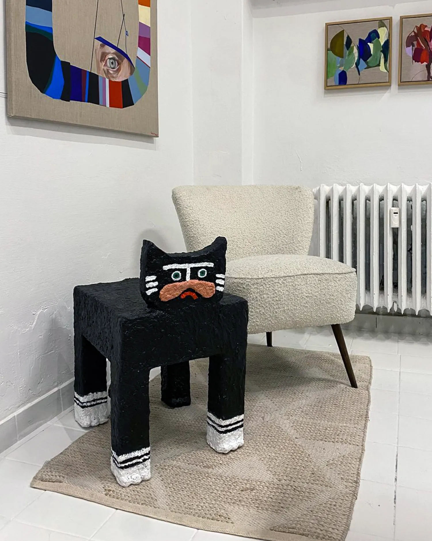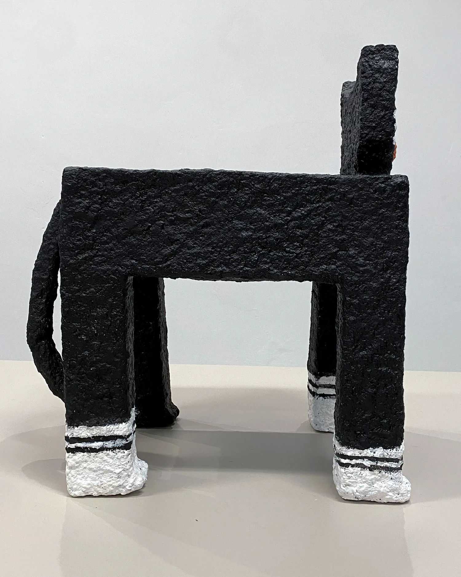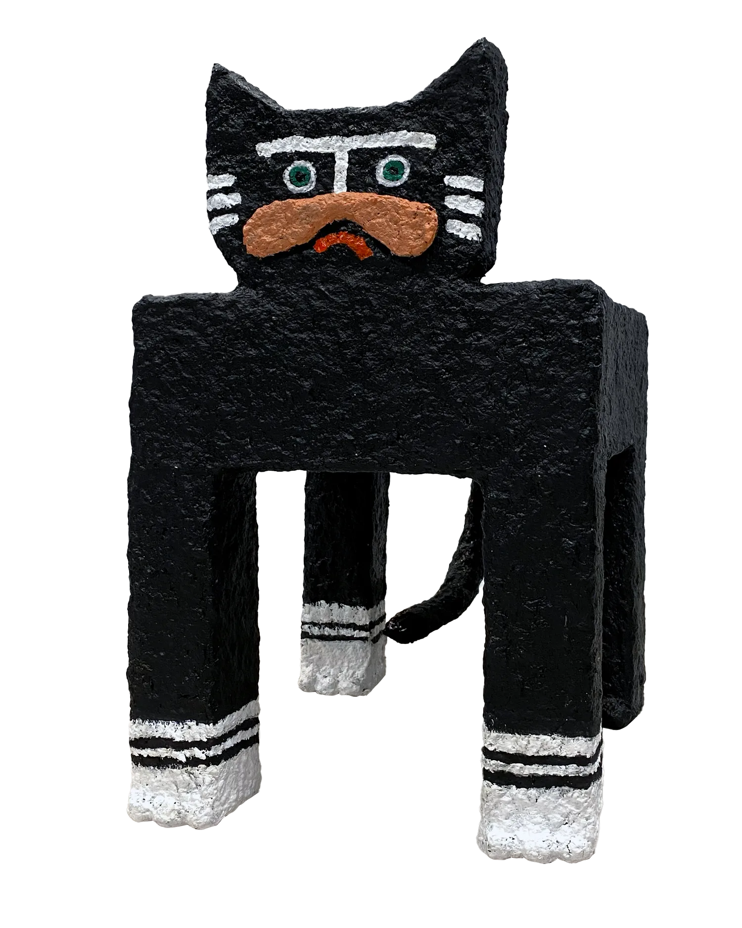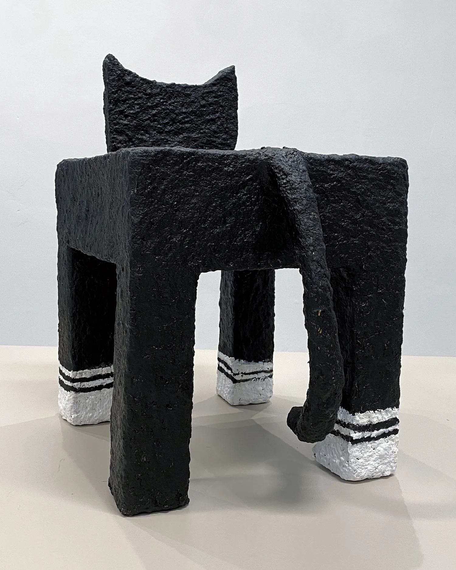 Kot z serii Rzeźby Towarzysze to papier-mâché’owy totem domowy – strażnik codzienności, który działa na własnych zasadach. Kot jest dziś jednym z najbardziej popkulturowych zwierząt: bohaterem memów, i wszechobecnych „śmiesznych filmików”. Domowy, oswojony, a jednocześnie zawsze trochę osobny. Na złość kotu, rzeźba ta może też pełnić funkcję stolika-pomocnika.